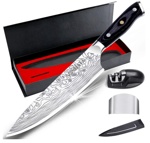 Cuchillo de chef profesional súper afilado con protector de dedos y afilador de cuchillos