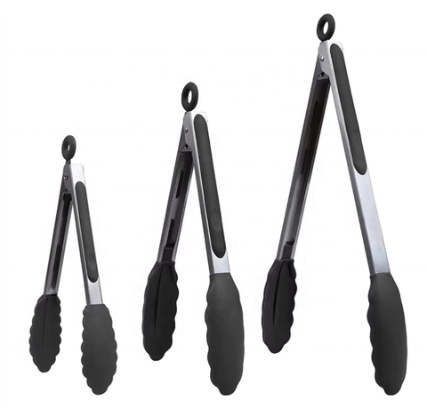 3 Bộ Kẹp Bếp Màu Đen, Kẹp Thực Phẩm Nấu Nướng BBQ Bằng Thép Không Gỉ Không Dính BPA Silicone Cao Cấp