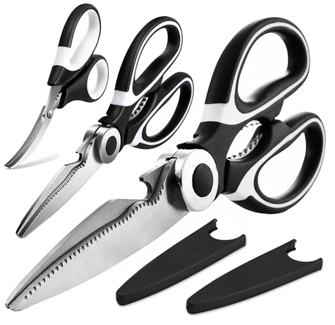 3 gói kéo nhà bếp-Bảo hành thay thế trọn đời-Kéo cắt thép không gỉ nặng để cắt thịt, thực phẩm, cá,