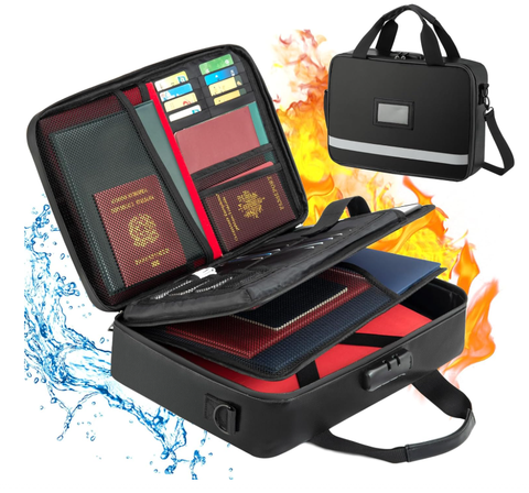 Caixa de documentos à prova de fogo com fechadura, Saco organizador de arquivos com 2000 ℉ isolado, Caixa de armazenamento segura impermeável portátil